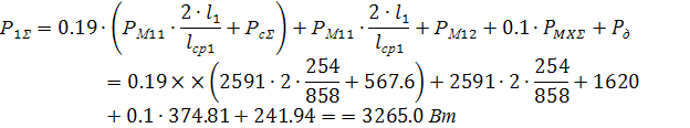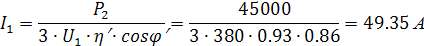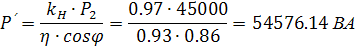 Расчетную мощность Р1 по коэффициенту k>H>=0.97 находим по формуле 1.11[1], cosφпринимаем 0.86: