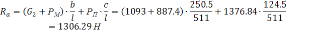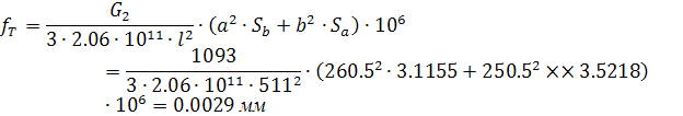 Прогиб вала посередине сердечника от поперечной силы передачи: