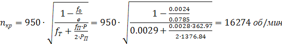 С учетом влияния силы тяжести соединительного устройства первая критическая частота вращения вала: