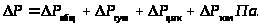 Потери на преодоление местных сопротивлений: