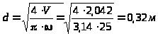 Выбираем стальную трубу наружным диаметром 320 мм. Внутренний диаметр трубы d=320-12∙2=296 мм.