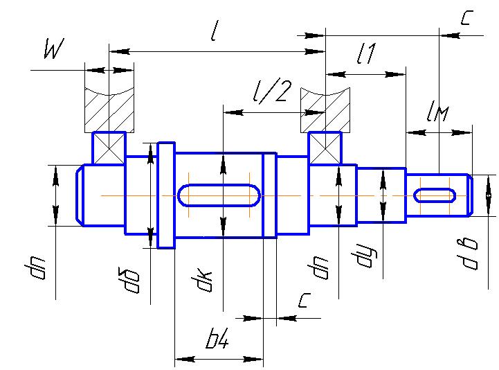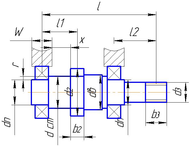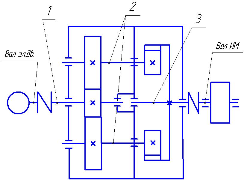 Рис.1 Схема валов привода: 1 - быстроходный вал; 2 - промежуточный вал; 3 - тихоходный вал.