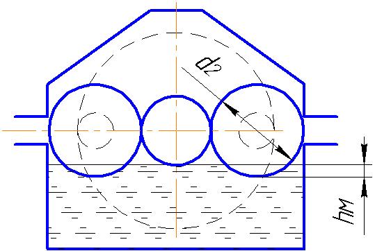 Используем картерную систему смазывания. В корпус редуктора заливаем масло так, чтобы венец зубчатого колеса был в него погружен на глубину hм (рис.10):