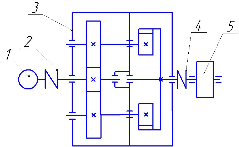 редуктор зубчатый цилиндрический двухступенчатый соосный двухпоточный с внутренним зацеплением тихоходной ступени;