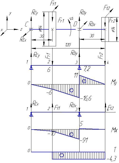 (σ-1) D=380/1,45=262Н/мм2; (τ-1) D=220/1,28=172 Н/мм2.