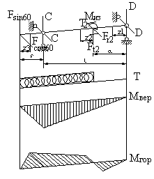 Исходные данные: радиальные нагрузки на подшипники F>r>>С>= 3255Н, F>rD>=1514Н; частота вращения вала п>2>=215об/мин; диаметр вала под подшипниками d>n>=40мм; расстояние между подшипниками l=101мм; требуемый ресурс подшипников [L>h>]=15000 ч; режим работы – умеренные толчки; температура подшипникового узла t<100˚С.