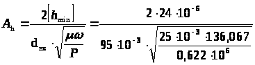 7. За знайденим раніше значенням А>h>,= 0,216 з малюнка [4, рис.1.27 б] знаходимо максимальний відносний ексцентриситет max = 0,948, при якому h = [h min].