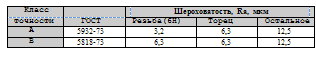 Действительный профиль резьбы отличается от номинального допускаемыми отклонениями (допусками) диаметров (d, d>2>, D>1>, D>2>). На рис. 6 зоны возможного расположения действительных профилей заштрихованы. 6h, 6g - поля допусков диаметра d>2 >винта; 6Н, 6G - поля допусков диаметра D>2> гайки.