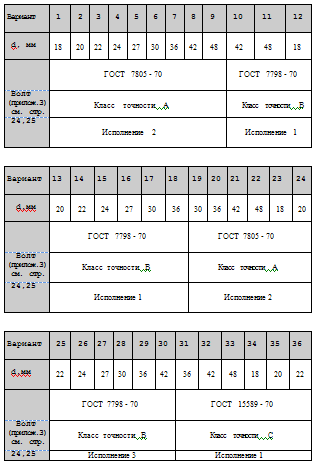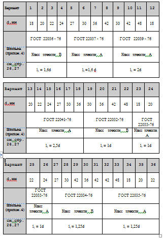 Длину болта и шпильки студент выбирает самостоятельно, используя соответствующий стандарт, или принимает рекомендуемую (см. табл.).