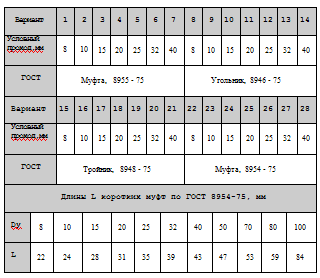 Фитинги см. рис. 14 а, б и табл. 2; контргайки см. рис. 14 и табл. 2; трубы см. приложение 7; обозначение резьбы см. табл. 1. Варианты заданий см. раздел 6.