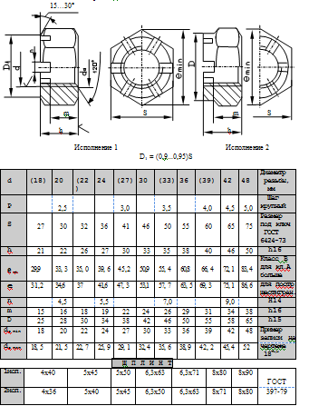 d>3 >(D>4>) - диаметр канавки винта (гайки)