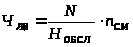Н>ОБСЛ> – норма обслуживания (количество единиц оборудования или рабочих мест, которое должно обслуживаться одним рабочим), маш./чел.;