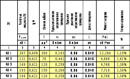 7.3.3 Расчёт осветительной сети по допустимой потере напряжения