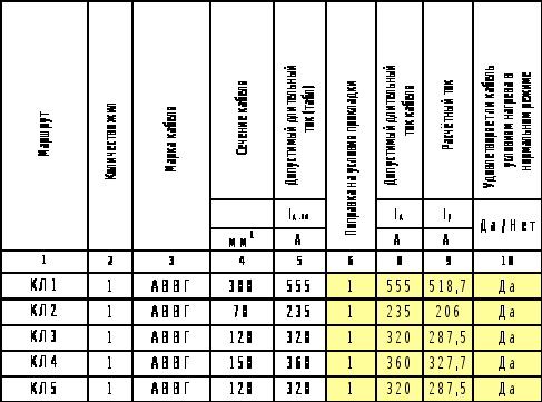 5.3 Выбор кабельных линий по нагреву длительно допустимым током
