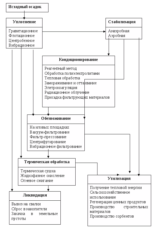 При выборе технологической схемы обработки образующихся осадков были учтены следующие требования: в связи с биологической нестабильностью осадков не должно возникать неприятных запахов, осадок не должен содержать опасных веществ для человека и живых организмов, по возможности не способствовал размножению насекомых, червей, грызунов, внешний вид осадков не должен вызывать отвращение. Дальнейшее естественное требование, чтобы все это было недорого, не загрязнялась окружающая среда, оборудование работало надежно.