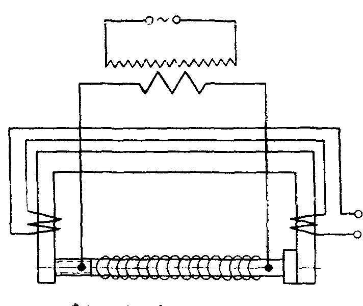 Следует отметить, что если трещины расположены параллельно магнитным силовым линиям, последние деформируются незначительно и, следовательно, трещины в таких случаях мало выделяются. Поэтому более эффективным является комбинированный способ обнаружения дефектов (рис. 2), при котором создается продольно- поперечное или спиральное магнитное поле. Продольные силовые линии создаются электромагнитом постоянного тока, а поперечные — при подключении испытуемой детали к сети с большей силой тока (обычно подключением ее накоротко к зажимам вторичной обмотки трансформатора).