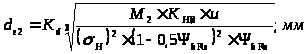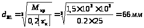 Діаметр вихідного кінця при допускаємо му напруженні [τ>к>] = 25мПа