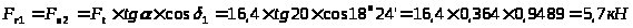 Радіальна сила для шестерні дорівнює осьовій для колеса: