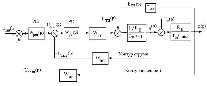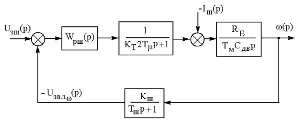 Об'єктом регулювання зовнішнього контуру швидкості є замкнутий контур струму і ланка, що описує механічний опір двигуна (рис. 4).