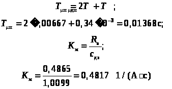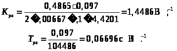 Тобто для відповідності перехідного процесу в контурі регулювання струму перехідному процесу в контурі оптимальній структурі, необхідний ПІ-регулятор струму з коефіцієнтом передачі К>рс> і постійною часу Т>рс>: