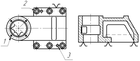 Цетрувати отвори 1, 2 і 3; Свердлувати отвори 1; Свердлувати отвори 2; Свердлувати отвори 3; Цекувати отвори 2; Нарізати різь в отворах 1 |