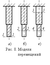 перемещение свободного торцевого сечения 1-1 при неподвижном другом торцевом сечении (рис. 8, а) численно равно удлинению стержня;