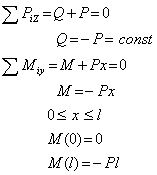 При интегрировании уравнения необходимо задать четыре граничных условия (по два на каждом конце балки) в том числе так называемые силовые граничные условия - условия, накладываемые на силовые величины (изгибающий момент и поперечную силу), которые выражаются через производные от прогиба. Так как