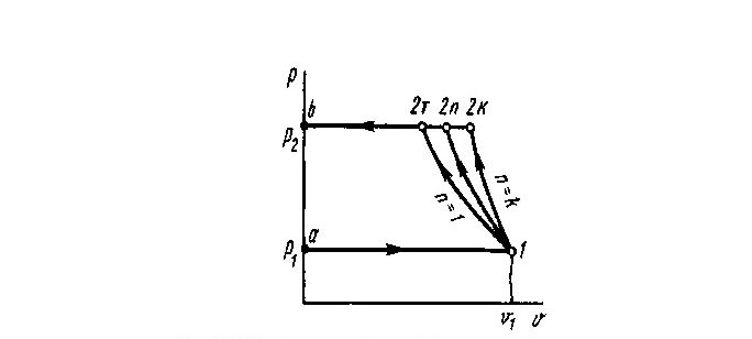 1. PV=const; 2. PVn=const; 3. PVk=const; 4. P=const;