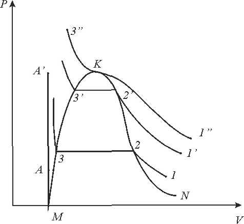 10. Стан вологої насиченої водяної пари характеризується на діаграмі лінією: 1.АК; 2. КВ; 3. АА’; 4. АКВ;