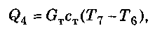 де w>B> — витрата води, кг/с; T>3> і Т>4> — початкова і кінцева температура води, °С.