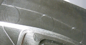 Второе правило ВСО – гладкая траектория инструмента. Оно вытекает из необходимости снижения динамических нагрузок во время резкой смены направления движения инструмента. Надо максимально возможно исключить углы на траектории. В углах, где инструмент меняет направление, он вынужден остановиться, снижение нагрузки в этот момент вызывает врезание фрезы в тело детали и как следствие на поверхности детали остаются следы, которые видно на рисунке.