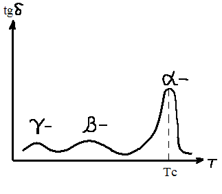 Рис. 8. Вторичные релаксационные переходы в полиметилметакрилате (пояснение в тексте)