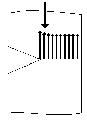Дефекты структуры всегда являются концентраторами напряжений. Пример концентрации напряжения на микротрещине показан на рис. 5. При среднем напряжении σ величина перенапряжения σ' в вершине трещины (показано стрелками) может превышать а в десятки раз. Действующее в вершине микротрещины перенапряжение σ' приводит к вынужденному перемещению части сегментов или групп сегментов (надмолекулярных структур), расположенных в непосредственной близости от вершины. Перемещение сегментов под действием механического напряжения облегчается тем, что в образце накоплен дополнительный свободный объем при растяжении на первой стадии.
