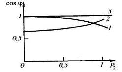 Мал. 8. Залежності cos синхронного двигуна від навантаження