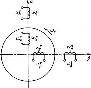 Найпростішою електричною машиною є ідеальна узагальнена електрична машина (мал. 1), тобто машина симетрична, ненасичена, що має гладкий повітряний зазор. На статорі й роторі такої машини розташовані по двох обмотки: wsб і wsв на статорі, wrб і wrв на роторі, зрушені в просторі відносно один одного на електричний кут, рівний 90°. Якщо до обмоток статора або ротора такої машини підвести струми, зрушені в часі на електричний кут 90°, то в повітряному зазорі машини буде обертове кругове поле. При симетричній синусоїдальній напрузі поле буде синусоїдальне, тому що ідеальна машина не вносить у зазор просторових гармонік. Всі реальні електричні машини в тім або іншому ступені відрізняються від ідеальної машини, тому що в повітряному зазорі реальної машини не можна одержати синусоїдальне поле.