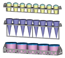 Этот процесс производится путем присоединения к линии различных устройств. После напитывания мороженого производства различными ингредиентами смесь поступает в дозирующие устройства, формирующие вид мороженого.