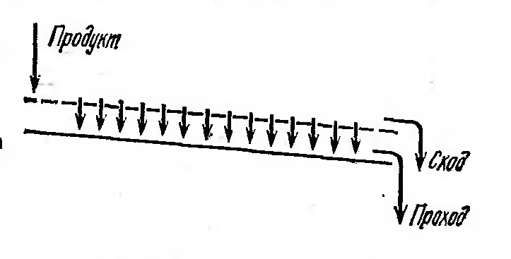 Обязательным условием просеивания является движение смеси по ситовой поверхности. Для лучшего перемещения материала плоским ситам в просеивающих машинах придают слегка наклонное положение с углом наклона 10 - 15º.