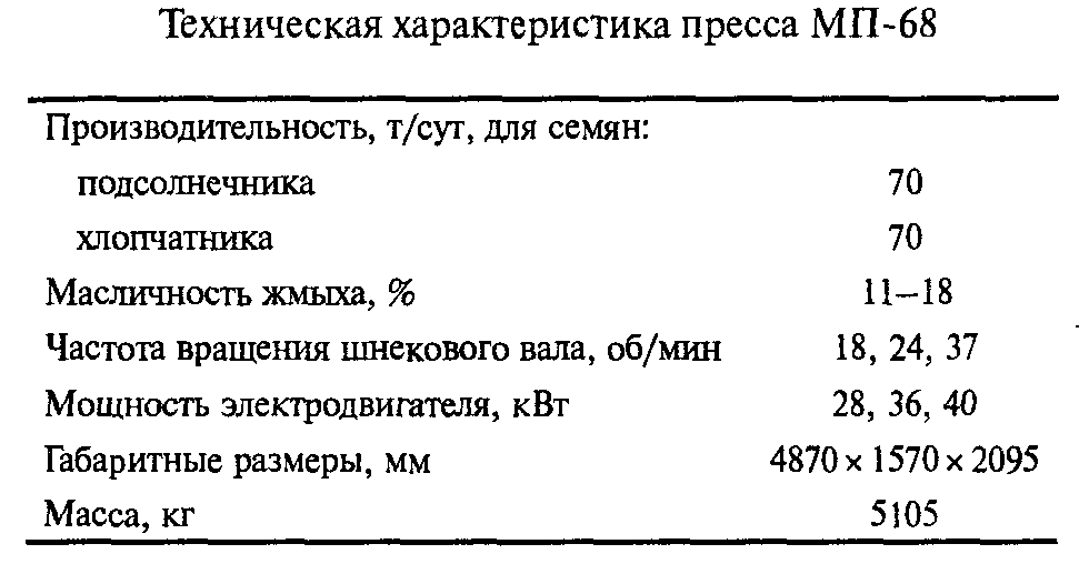 Экспеллеры характеризуются меньшим диаметром зеерного цилиндра и шнекового вала, порядка 130-150 мм, толщиной жмыховой ракушки, равной 5-7 мм, и частотой вращения шнекового вала от 4,5 до 35,6 об/мин.