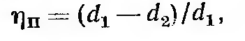 Величину η>п> выражают в долях единицы или в процентах. Необходимо отметить, что оценка эффективности работы пылеотделительного устройства по величине η>п> - маловыразительна,. так как с точки зрения санитарно-гигиенических условий имеет значение не количество задержанной пыли η>п>, а количество пропущенной, т.е.1 - η>п>. Поэтому, если одна установка имеет η>п> =: 0,96 (задерживает 96% пыли), а другая η>п> =0,98 (задерживает 98% пыли), то действительная эффективность работы второй установки больше первой не на 2%, а в (100-96) / (100-98) - 2 раза, так как вторая пропускает пыли вдвое меньше, чем первая.