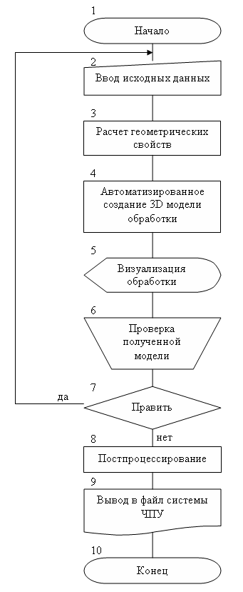 Система выполняется в виде программного модуля и создается для автоматического расчета всех необходимых параметров обработки по введенным данным и вывода текста программы, готового для ввода в память станка.