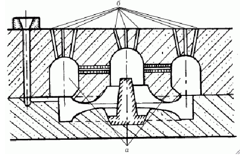 Рис. 7. Прибыли: а – полости для прибылей; б – каналы для выхода воздуха.