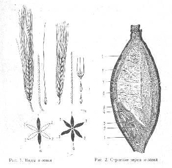 Характеристики ячменя. Основным сырьем для приготовления пива служит ячменный солод(проросший ячмень), получаемый из пивоваренных сортов ячменя. Ячмень относится к семейству злаковых, роду Гордеум. Бывает двухрядным и шестирядным. На рисунке 1. показаны колосья двухрядного а и шестирядного б ячменя, а также форма и расположение зерен на стержнях. Двухрядные ячмени, в основном, яровые, а шестирядные - яровые и озимые. Для производства пива используется двухрядный ячмень, а шестирядный используется на корм скоту(фураж).