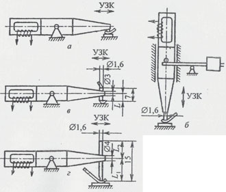 Разработано несколько вариантов ультразвуковой сварки кристаллов с выводами: с использованием продольной, поперечной, продольно-поперечной колебательных систем (рис. 9).
