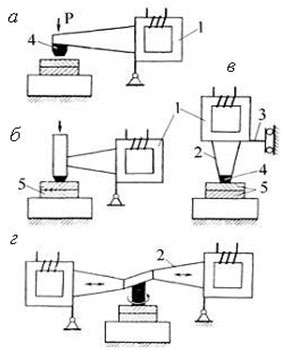 Рис.9 Схемы выполнения процесса ультразвуковой сварки с использованием продольной (а, 6) и продольно-поперечной (в, г) колебательных систем