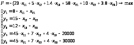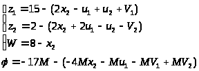 Для обращения неравенств системы в равенства введём V>1>, V>2>, W и преобразуем систему: