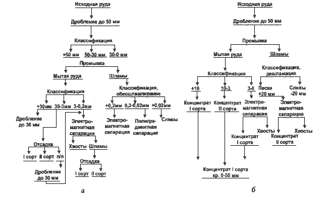 Марганцевые руды на отечественных обогатительных фабриках перерабатываются по единой схеме (рис.1.1), позволяющей получать готовый продукт в виде концентратов различного качества (табл.1.2).