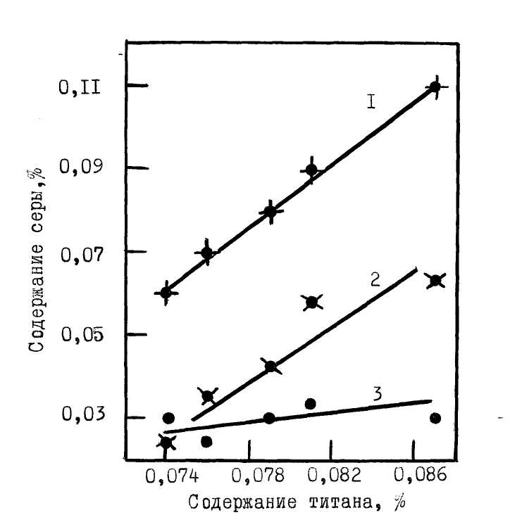 По среднегодовым анализам этих двух сплавов получена зависимость, отражающая влияние кремния и титана на массовую долю серы: