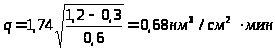 По графику для (см. рис. 36) [1] t=1350; Ф=0,7 находим q=230000ккал/м2·час