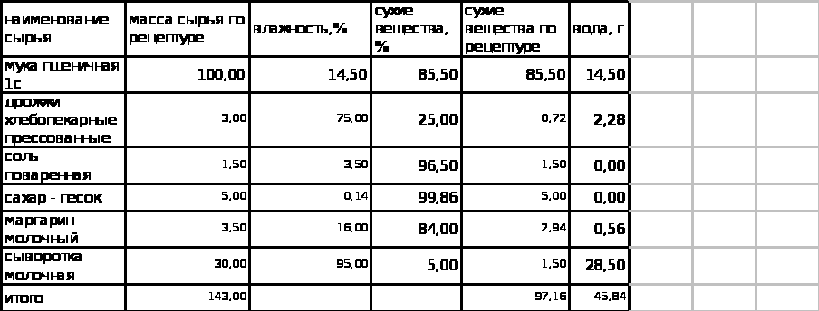 Расчет количества сырья, внесенного в 100 г. булки с молочной сывороткой
