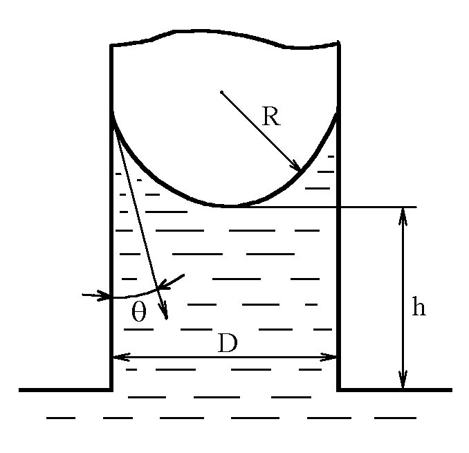 рис. 10. Схема подъема жидкости в капилляре